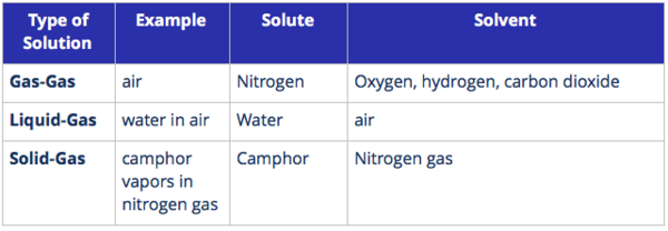 1. Gaseous solutions are solutions where the solvent is a gas.